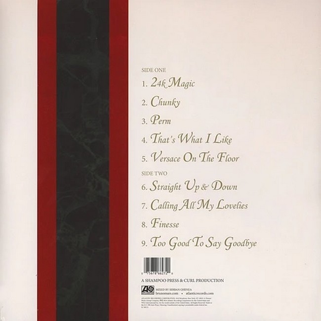 Фірмова вінілова платівка (VINYL)24K Magic is the third studio album by American singer-songwriter Bruno Mars. It was released by Atlantic Records on November 18, 2016. Mars reunited with Philip Lawrence and Christopher Brody Brown, who composed the album under their joint alias Shampoo Press & Curl. Mars enlisted new composers including the Stereotypes and James Fauntleroy. Recording sessions for 24K Magic took place between late 2015 and September 2016 at Glenwood Place Studios in Burbank, California.