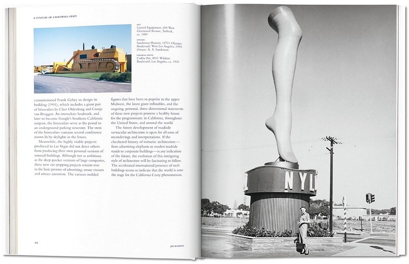 Yet, they flourished, especially along America’s Sunbelt, and in particular, in Southern California, as proprietors indulged their creative impulses in the form of giant, eccentric constructions — from owls, dolls, pigs, and ships, to coffee pots and fruit. Their symbolic intent was guileless, yet they were marginalized by history. But, over the past 40 years, California’s architectural anomalies have regained their integrity, and are now being celebrated in this freshly revised compendium of buildings, California Crazy.