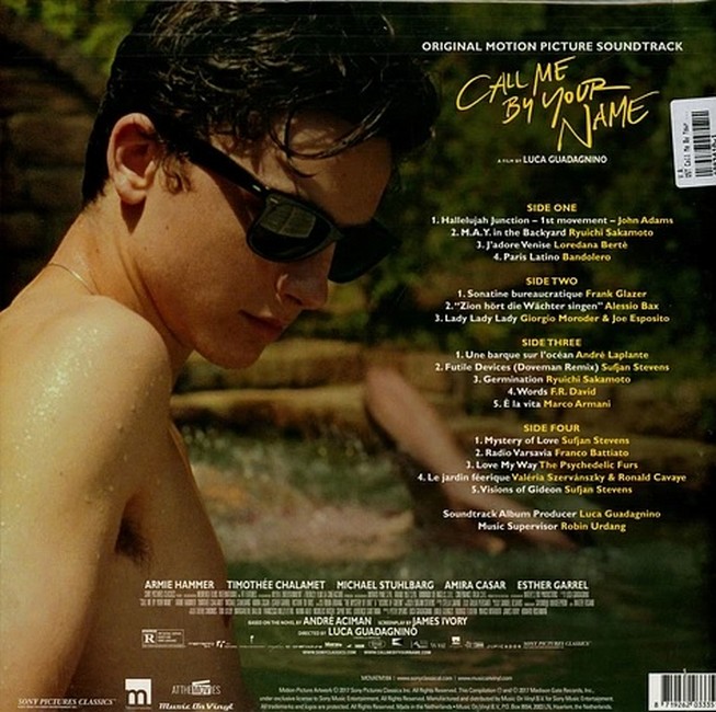 Фірмова вінілова платівка (VINYL)Call Me by Your Name: Original Motion Picture Soundtrack is the soundtrack to the 2017 romantic drama film, Call Me by Your Name. It features songs by The Psychedelic Furs, Franco Battiato, Loredana Berte, Bandolero, Giorgio Moroder, Joe Esposito, and F. R. David, with compositions by John Adams, Erik Satie, Ryuichi Sakamoto, Johann Sebastian Bach, and Maurice Ravel. American singer-songwriter Sufjan Stevens composed two original songs for the film, and the soundtrack also features a remix of his track "Futile Devices". Stevens's original song "Mystery of Love" was nominated for the Academy Award for Best Original Song at the 2018 ceremony. At the 61st Annual Grammy Awards, "Mystery of Love" received a nomination for Best Song Written for Visual Media and the soundtrack received one for Best Compilation Soundtrack for Visual Media.