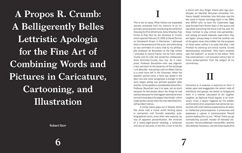 Эта публикация, документирующая получившую признание критиков выставку «Рисование для печати: Mind Fucks, Kultur Klashes, Pulp Fiction & Pulp Fact», прославленного Р. Крамба в Дэвиде Цвирнере, Нью-Йорк, в 2019 году и курируемая Робертом Сторром, дает возможность погрузиться в мир Необычный ум Крамба. В сопроводительном тексте Сторр исследует сложный характер некоторых работ Крамба и важность художников, которые принимают статус-кво.