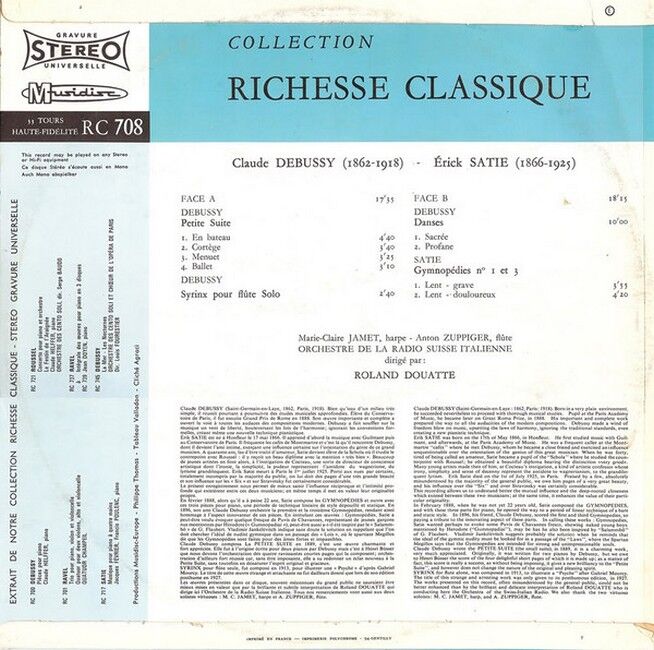 Debussy / Satie - Marie-Claire Jamet, Anton Zuppiger, Orchestre De La Radio Suisse Italienne, Roland Douatte – La Petite Suite - Syrinx - Danses Profanes Et Sacrees / Les Gymnopedies