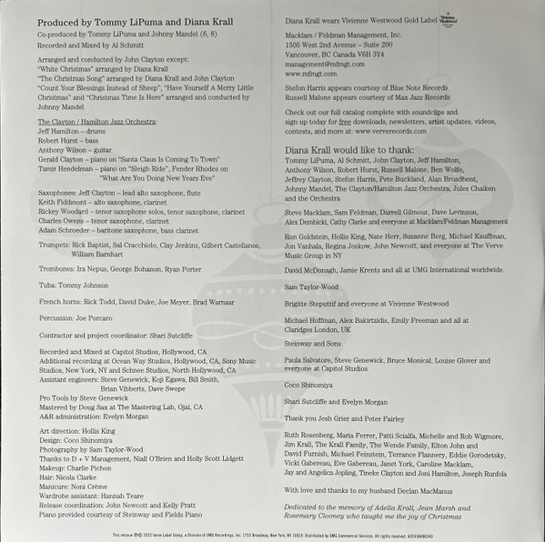 Откройте для себя волшебство рождественского джаза с альбомом "Christmas Songs", записанным великолепной Diana Krall в сотрудничестве с The Clayton-Hamilton Jazz Orchestra. Это издание 2023 года от Verve Records не только оживит ваши праздничные вечера, но и станет жемчужиной вашей виниловой коллекции.