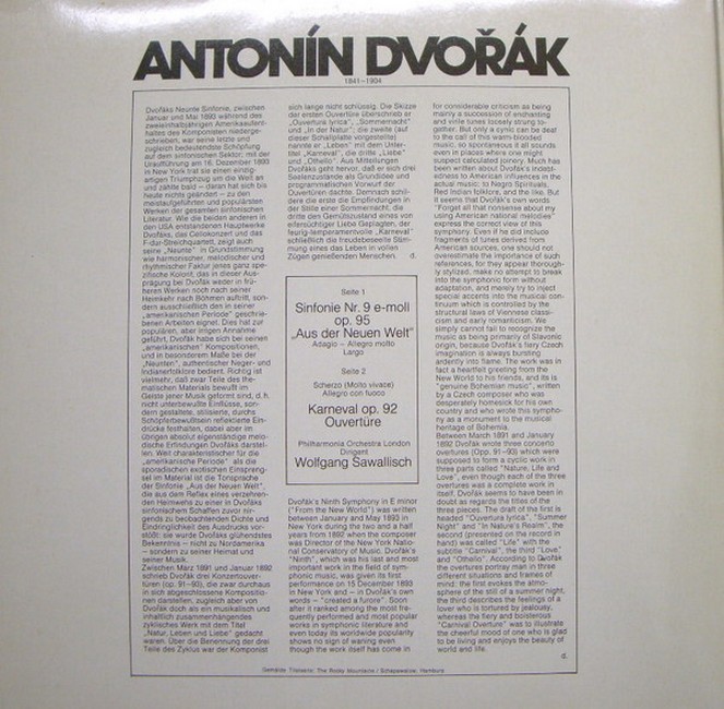 Dvorak, Smetana, Philharmonia Orchestra London, Royal Philharmonic Orchestra London, Wolfgang Sawallisch, Sir Malcolm Sargent – Sinfonie Nr. 9 E-moll Op. 95 'Aus Der Neuen Welt' / Karneval-Overture Op. 92 • Die Moldau