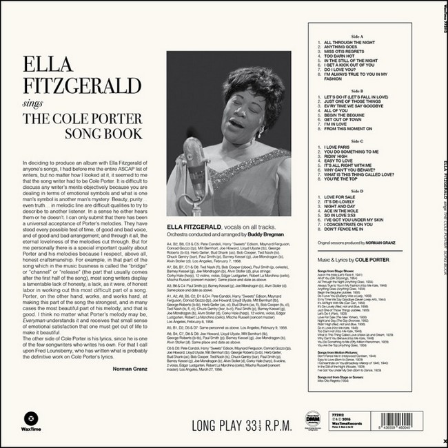 Фірмова вінілова платівка (VINYL)Ella Fitzgerald Sings the Cole Porter Song Book is a 1956 studio double album by American jazz singer Ella Fitzgerald, accompanied by a studio orchestra conducted and arranged by Buddy Bregman, focusing on the songs of Cole Porter.