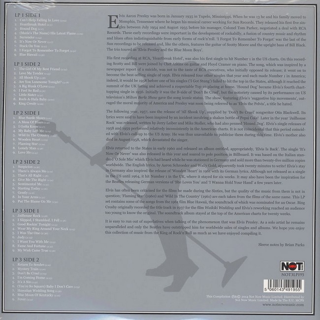 Фірмова вінілова платівка (VINYL)Elvis Aaron Presley (January 8, 1935 – August 16, 1977), known mononymously as Elvis, was an American singer and actor. Known as the "King of Rock and Roll", he is regarded as one of the most significant cultural figures of the 20th century.