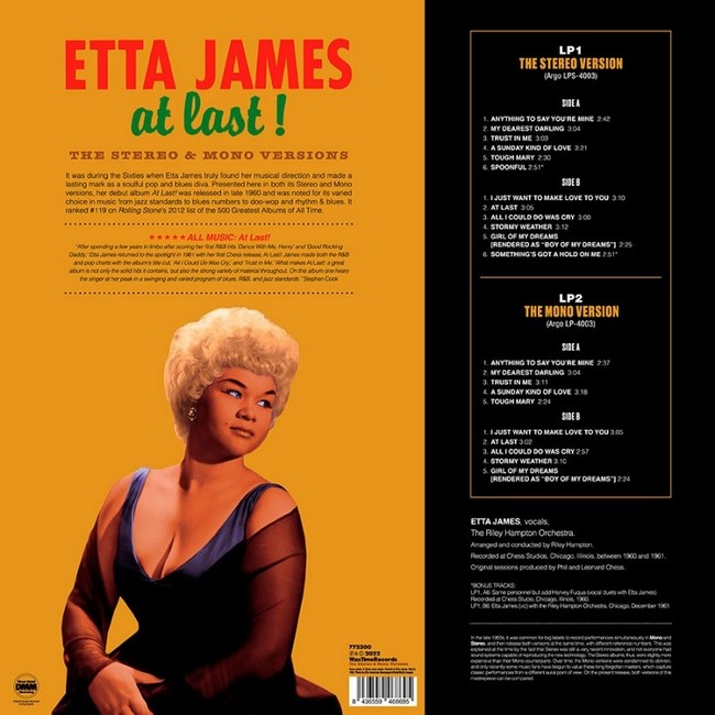 Фірмова вінілова платівка (VINYL)At Last! is the debut studio album by American blues and soul artist Etta James. Released on Argo Records in November 1960 the album was produced by Phil and Leonard Chess. At Last! also rose to no. 12 upon the Billboard Top Catalog Albums chart.