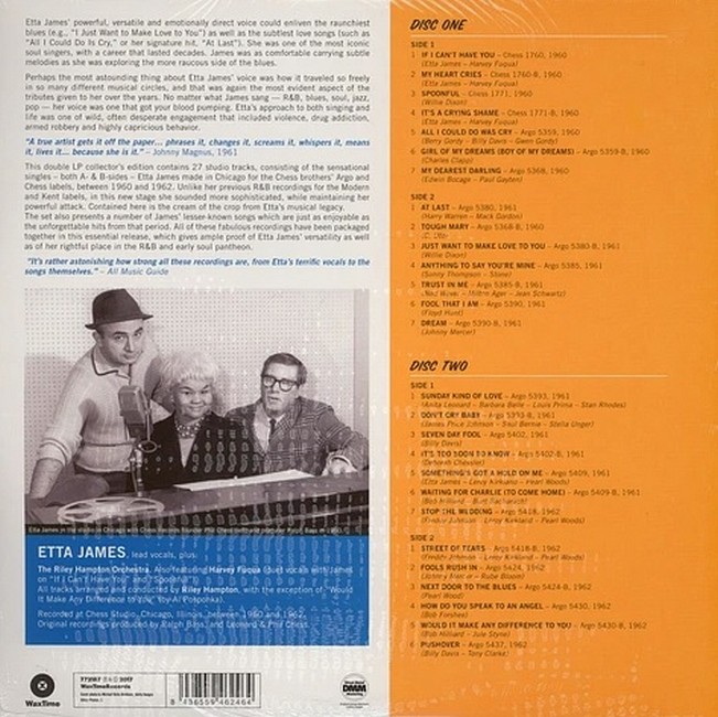 Фірмова вінілова платівка (VINYL)Jamesetta Hawkins (January 25, 1938 – January 20, 2012), known professionally as Etta James, was an American singer and songwriter who performed in various genres, including gospel, blues, jazz, R&B, rock and roll, and soul. Starting her career in 1954, she gained fame with hits such as "The Wallflower", "At Last", "Tell Mama", "Something's Got a Hold on Me", and "I'd Rather Go Blind". She faced a number of personal problems, including heroin addiction, severe physical abuse, and incarceration, before making a musical comeback in the late 1980s with the album Seven Year Itch.