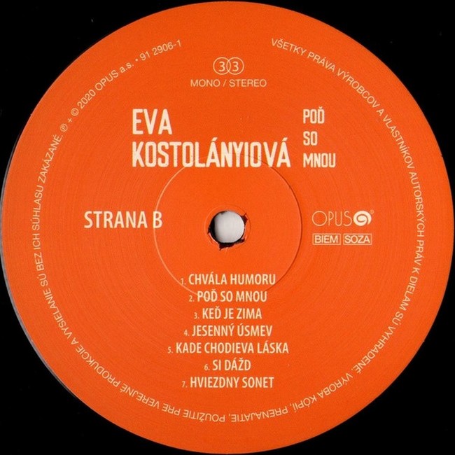 Фірмова вінілова платівка (VINYL)Eva Kostolanyiova is a Slovak vocalist, dancer and musical actress. Born November 2nd, 1942 in Trnava, died October 3rd, 1975 in Bratislava (Slovakia, former Czechoslovakia). She came from very modest proportions. Both father and mother worked in a Trnava sugar refinery. She had seven siblings, many died very young.