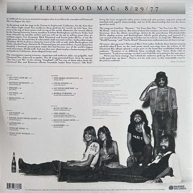 Фірмова вінілова платівка (VINYL)Rumours Live is a live album by the British-American rock band Fleetwood Mac, released on 8 September 2023 through Rhino Entertainment and Warner Records. The tracks were recorded on 29 August 1977 at the Forum in Inglewood, California on the Rumours Tour. The set list comprises tracks from 1975's Fleetwood Mac and 1977's Rumours, with the exception of "Oh Well", released as a single in 1969. All recordings were previously unreleased aside from "Gold Dust Woman", which appeared on the 2021 reissue of Live. The live version of "Dreams" preceded the album's release.