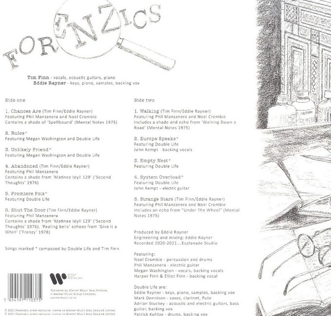 Фірмова вінілова платівка (VINYL)Forenzics is a New Zealand musical project formed by Tim Finn and Eddie Rayner in 2020. It's a project that includes 'shades & echoes' of early Split Enz repertoire. The songs are combinations of new and re-imagined lyrics and music.