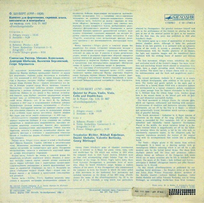 Franz Schubert - Sviatoslav Richter • Mikhail Kopelman • Dmitri Shebalin • Valentin Berlinsky • Georg Hortnagel – Forellenquintett