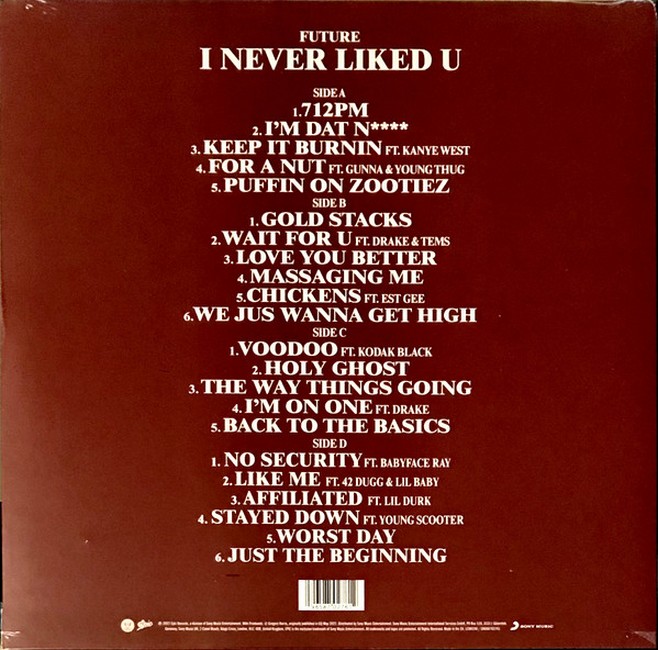 Фірмова вінілова платівка (VINYL)I Never Liked You is the ninth studio album by American rapper Future. It was released on April 29, 2022, by Freebandz and Epic Records. The production on the album was handled by multiple producers including ATL Jacob, FnZ, Southside, Taurus, TM88, and Wheezy, among others. The album features guest appearances from Kanye West, Gunna, Young Thug, Drake, Tems, EST Gee, and Kodak Black. The deluxe edition was released three days later on May 2, 2022, with additional guest appearances from Babyface Ray, 42 Dugg, Lil Baby, Lil Durk, and Young Scooter.