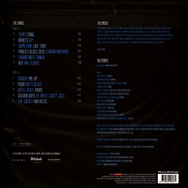 Фірмова вінілова платівка (VINYL)Gare du Nord is a Dutch-Belgian jazz band, originally consisting of Doc (Ferdi Lancee) and Inca (Barend Fransen). Doc played guitar and Inca played saxophone, while both performed vocal duties. After the pair split up in 2013, the band continued to work and tour with a different line-up.