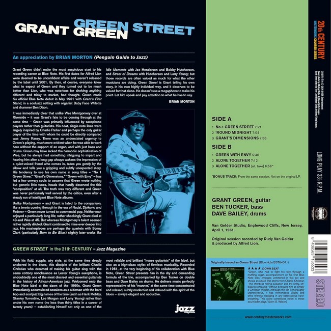 Green Street is an album by American jazz guitarist Grant Green featuring performances recorded and released on the Blue Note label in 1961. Green is backed by bassist Ben Tucker and drummer Dave Bailey. The CD reissue features two alternate takes from the same session as bonus tracks.