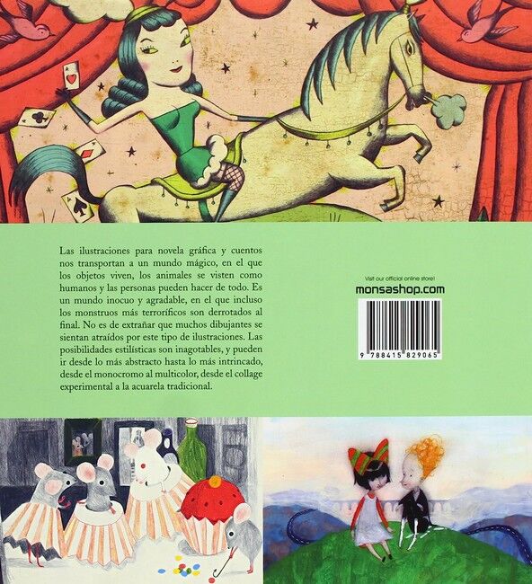 | Обзор | Las ilustraciones para novela grafica y cuentos nos transportan a un mundo magico, en el que los objetos viven, los animales se visten como humanos y las personas pueden hacer de todo. Es un mundo inocuo y agradable, en el que incluso los monstruos mas terrorificos son derrotados al final. No es de extranar que muchos dibujantes se sientan atraidos por este tipo de ilustraciones. Las posibilidades estilisticas son inagotables, y pueden ir desde lo mas abstracto hasta lo mas intrincado, desde el monocromo al |