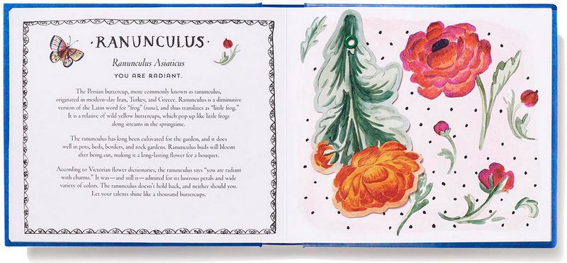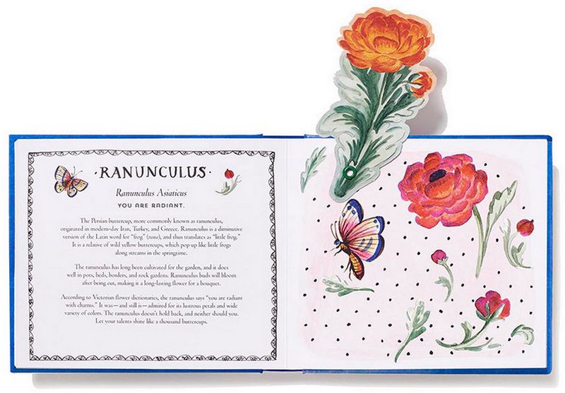 This book offers a fresh take on the Victorian notion of expressing oneself with the symbolic language of flowers. Thinking of You offers a soothing array of blooms with empathetic meanings. Each spread features a flower that "flips up" from the page, a brief description of the flower's symbolism, and its special message for the recipient. When all of the blossoms are popped up, the book can be displayed on a desk just like a vase of flowers.
