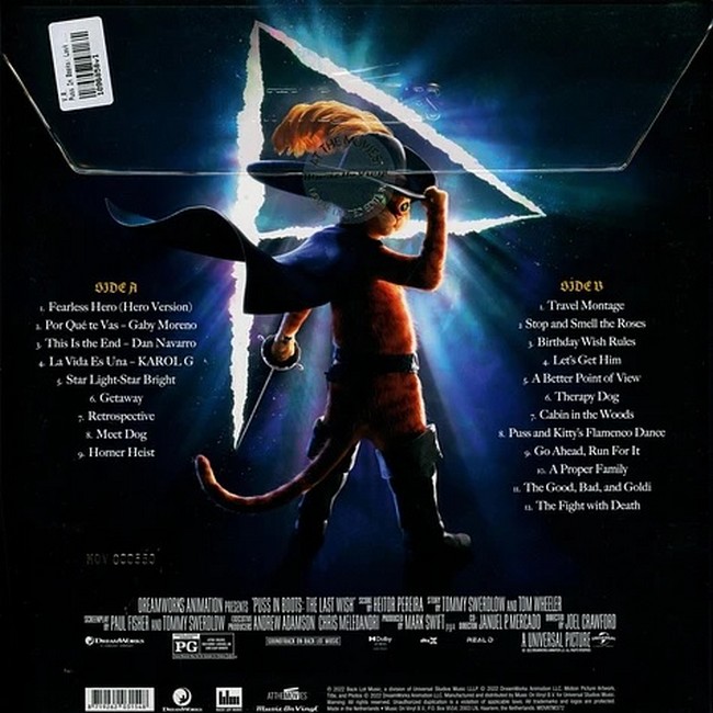Фірмова вінілова платівка (VINYL)Puss in Boots: The Last Wish (Original Motion Picture Soundtrack) is the soundtrack to the 2022 film Puss in Boots: The Last Wish, a sequel to Puss in Boots (2011). The album was released on December 16, 2022, by Back Lot Music, and featured musical score composed by Heitor Pereira, who replaced Henry Jackman, the composer of the first film. It featured five songs performed by Antonio Banderas, Dan Navarro, Gaby Moreno and Pereira, with his score accompanying the remainder of the album.