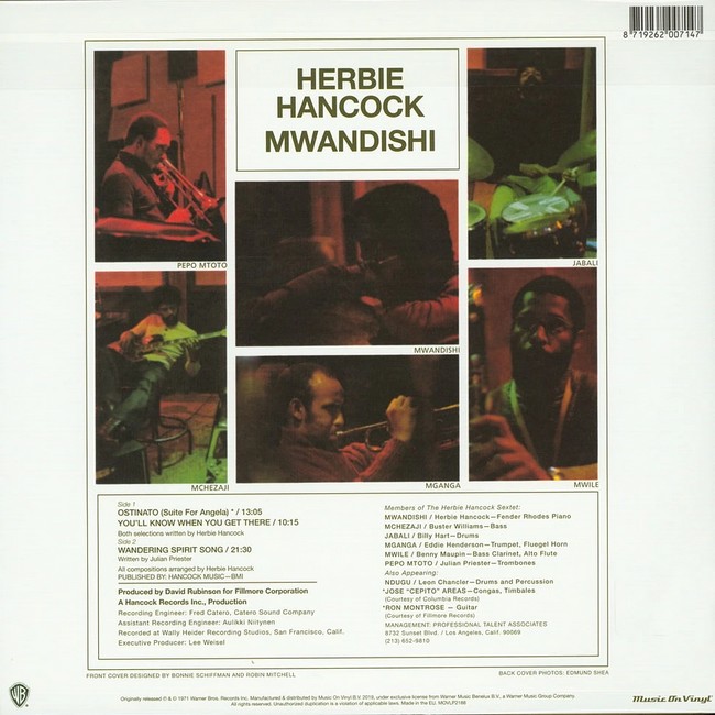 Фірмова вінілова платівка (VINYL)Mwandishi is the ninth album by jazz pianist Herbie Hancock, released in 1971. It is the first album to officially feature Hancock’s ‘Mwandishi’ sextet consisting of saxophonist Bennie Maupin, trumpeter Eddie Henderson, trombonist Julian Priester, bassist Buster Williams and drummer Billy Hart.