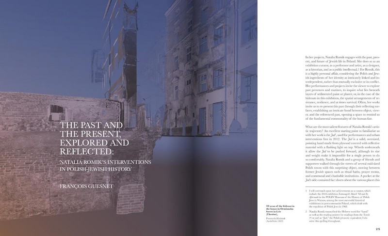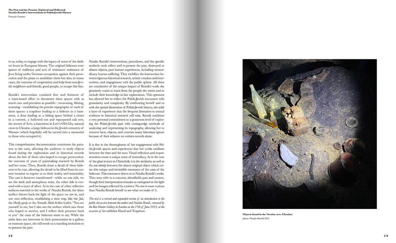 Около 50 000 евреев пережили Холокост, скрываясь на территории оккупированной Польши. Большинству из них пришлось искать, строить и использовать различные укрытия. Движимые необходимостью, они искали убежище в таких, казалось бы, маловероятных местах, как дупла деревьев, чуланы, подвалы или канализации, оставаясь там часами, днями, а иногда и месяцами. Архитектор, ученый и художник Наталья Ромик обнаружила и обследовала несколько убежищ, которые существуют и по сей день. Их архитектурные остатки свидетельствуют о творческом подходе и воле к выживанию их создателей. В своей выставке «Укрытия: Архитектура выживания» она использовала эстетически сложные скульптурные формы, чтобы передать их тонкую материальность и насыщенную историю.