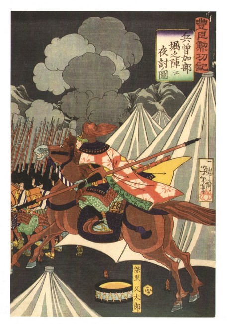 Hyosakabe attacks Hori's Encampment at Night, from the Chronicles of the Toyotomi Clan, 1867