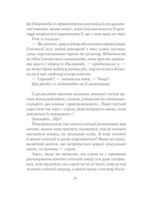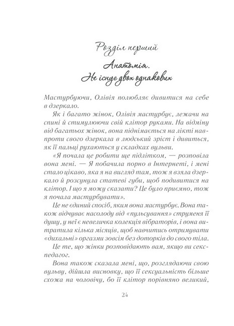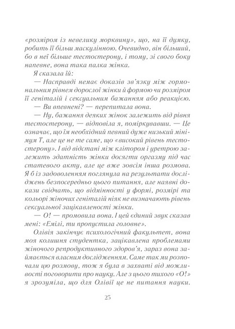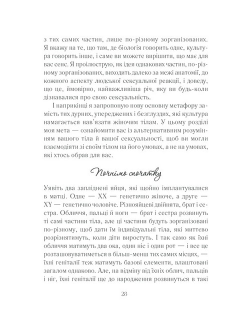 Емілі Наґоскі знає відповіді на ці та інші запитання. Про всі «секретики» і «точки» жіночого тіла, про сексуальне бажання, механізм його дії та ідеальні умови для його пробудження. На сторінках видання ви знайдете практики розкриття власного сексуального потенціалу, інформацію про ті самі «ідеальні умови», а також про зв’язок мозку й лібідо. Історії реальних жінок, їхні запитання й відповіді на них поряд із результатами досліджень кваліфікованих фахівців... Ви відкриєте те заповітне щось, яке поліпшить ваше сексуальне життя і змінить розуміння того, що означає бути сексуальною, бажаною та здоровою.