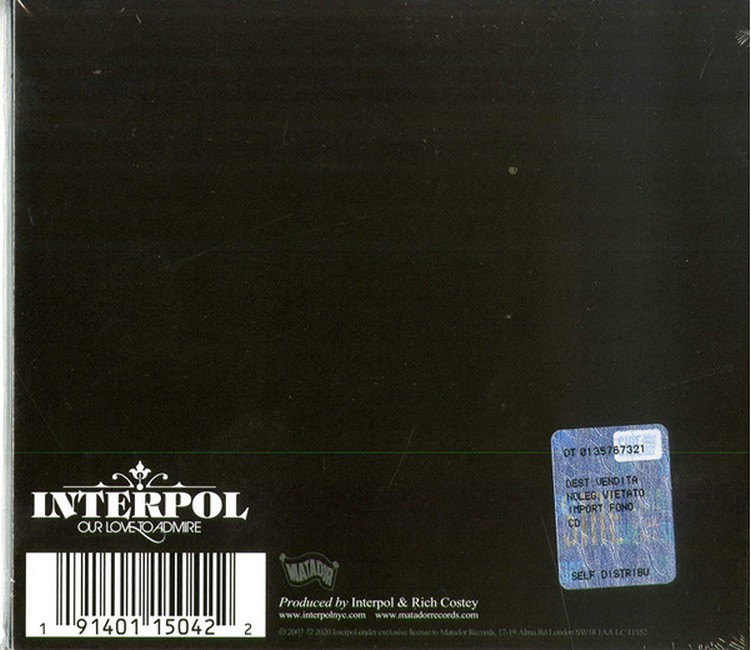 Фірмовий CD-дискOur Love to Admire is the third studio album by American rock band Interpol, released on July 10, 2007, through Capitol Records and Parlophone. Recorded at Electric Lady Studios in Greenwich Village and The Magic Shop in New York City, Our Love to Admire is the group's first and, to date, only album to be released on a major label as they departed from Matador Records beforehand. On April 25, 2007, the band officially announced the album title as Our Love to Admire as well as the track listing. The first single off the new album, "The Heinrich Maneuver", was released on May 7, 2007.