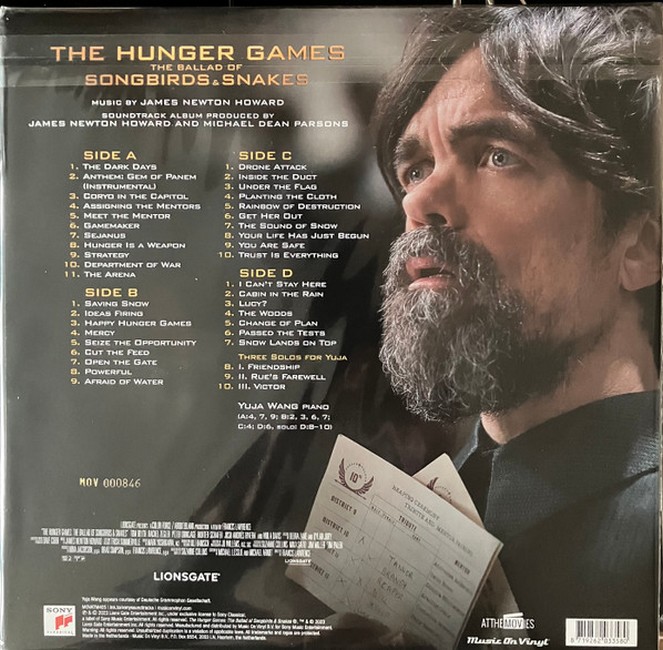Фірмова вінілова платівка (VINYL)The Hunger Games: The Ballad of Songbirds & Snakes (Original Motion Picture Score) is the score album to the 2023 film of the same name based on Suzanne Collins' 2020 novel The Ballad of Songbirds and Snakes. The fifth installment in The Hunger Games film series and prequel to the first film, stars Tom Blyth, Rachel Zegler, Peter Dinklage, Hunter Schafer, Josh Andres Rivera, and Viola Davis. James Newton Howard composed the film's score, whose album consisted of 40 tracks and featured pianist Yuja Wang in three of them. The soundtrack was released by Sony Masterworks on November 17, 2023.