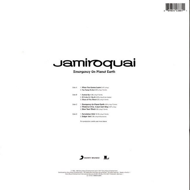 Фірмова вінілова платівка (VINYL)Emergency on Planet Earth is the debut studio album by English funk and acid jazz band Jamiroquai, released on 14 June 1993 under Sony Soho Square. Prior its release, the band debuted in 1992 with "When You Gonna Learn" under Acid Jazz Records, and front-man Jay Kay was given a major-label deal with Sony Music. The album was produced as Kay formed the band and is characterised by its acid jazz foundations, layers of instrumentation and socially charged lyrics.