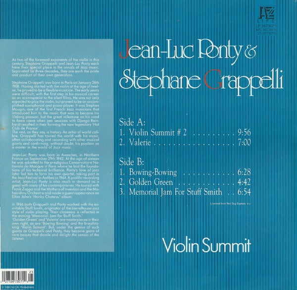 Jean-Luc Ponty & Stephane Grappelli – Violin Summit