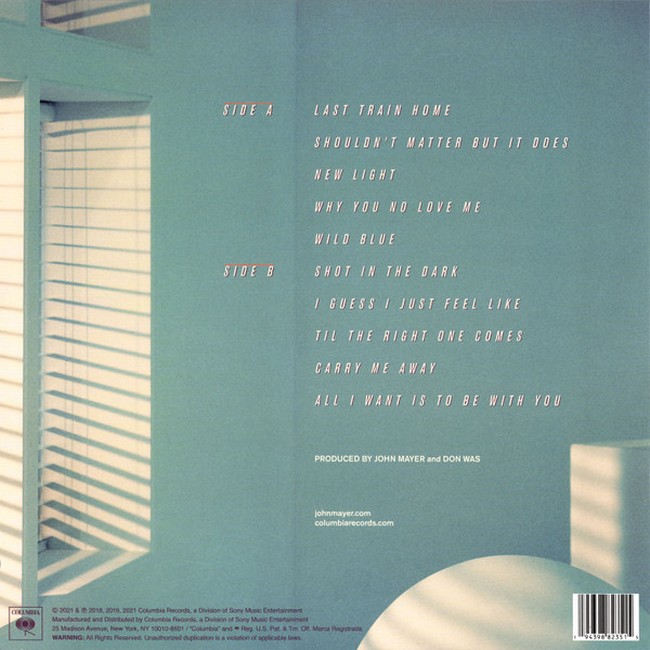 Фірмова вінілова платівка (VINYL)Sob Rock is the eighth studio album by American singer-songwriter John Mayer, released on July 16, 2021, by Columbia Records. The single "New Light", released in May 2018, is included on the album, as are Mayer's two singles from 2019, "I Guess I Just Feel Like" and "Carry Me Away". The lead single "Last Train Home" was released on June 4, 2021, and features guest vocals from Maren Morris. Mayer toured the United States with Dead & Company from August through October 2021 and embarked on a solo tour in support of the album in 2022.