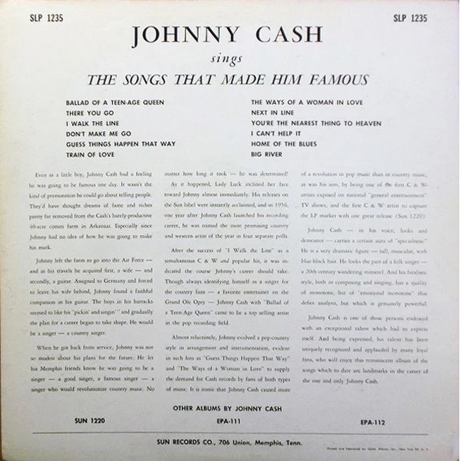 Johnny Cash – Johnny Cash Sings The Songs That Made Him Famous