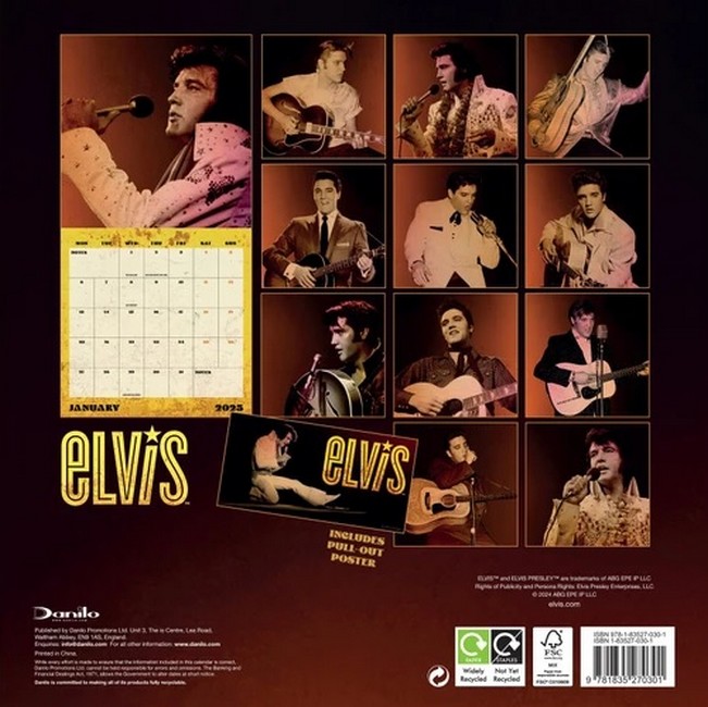 Фірмовий календар на стіну (Calendar)2025 Elvis Square Calendar. This wall calendar features amazing imagery from the King of Rock n Roll Elvis Presley. The large monthly date panels also have plenty of room for all of your 2025 plans.