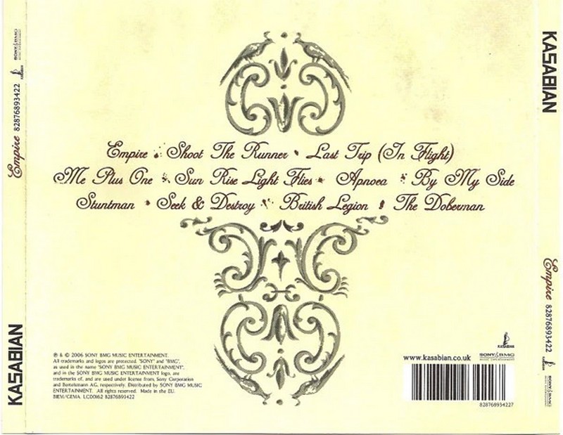 Фірмовий CD диск (CD)Empire is the second album by British rock band Kasabian, released in August 2006. The album went on to No. 1 in the UK Albums Chart upon its release and was preceded by the release of new single "Empire" on 24 July 2006.
