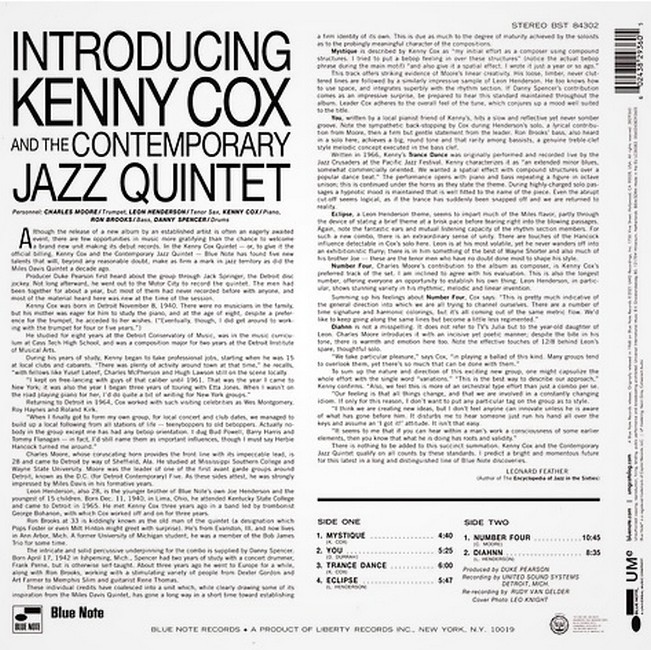 Фірмова вінілова платівка (VINYL)Introducing Kenny Cox is the debut album by American jazz pianist Kenny Cox featuring performances recorded in 1968 and released on the Blue Note label. The 2000 CD reissue added Cox's second Blue Note album Multidirection as bonus tracks.