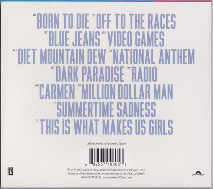 | 1 | Born To Die Arranged By [Strings], Conductor [Strings] – Larry Gold Guitar – Jeff Bhasker Keyboards, Drums – Emile Haynie Mixed By – Dan Grech Marguerat* Mixed By [Assistant Mixer] – Duncan Fuller Producer [Vocal Production] – Justin Parker Recorded By [Additional Recording By] – Brent Kolatalo Strings [Assisted By] – Steve Tirpak Vocals [Additional Vocal Noises] – Ken Lewis Written-By – Justin Parker | |