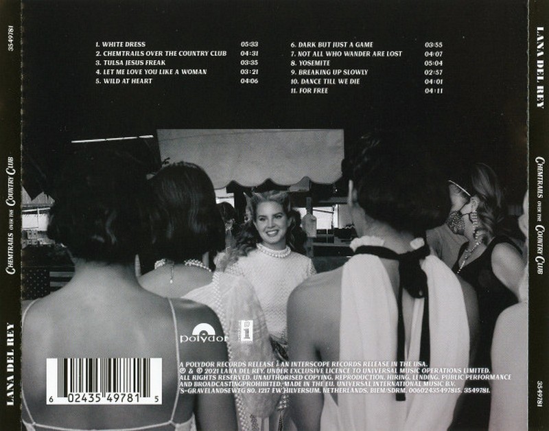 Фірмовий CD диск (CD)Chemtrails over the Country Club is the seventh studio album by American singer-songwriter Lana Del Rey. It was released on March 19, 2021, by Interscope and Polydor Records. After working with him on her previous studio album, Norman Fucking Rockwell! (2019), Del Rey enlisted producer Jack Antonoff as her co-producer for the majority of the album, while previous collaborator Rick Nowels produced one of the album's tracks. The album features collaborations with Nikki Lane, Weyes Blood, and Zella Day.