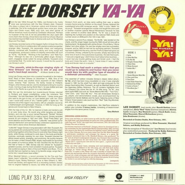 Фірмова вінілова платівка (VINYL)Irving Lee Dorsey (December 24, 1924 – December 1, 1986) was an American pop and R&B singer during the 1960s. His biggest hits were "Ya Ya" (1961) and "Working in the Coal Mine" (1966). Much of his work was produced by Allen Toussaint, with instrumental backing provided by the Meters.