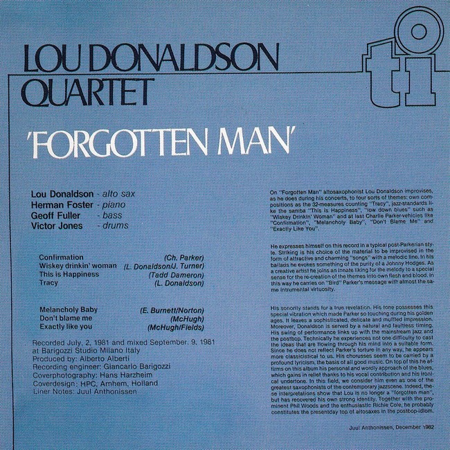 Lou Donaldson Quartet Featuring Herman Foster – 'Forgotten Man'