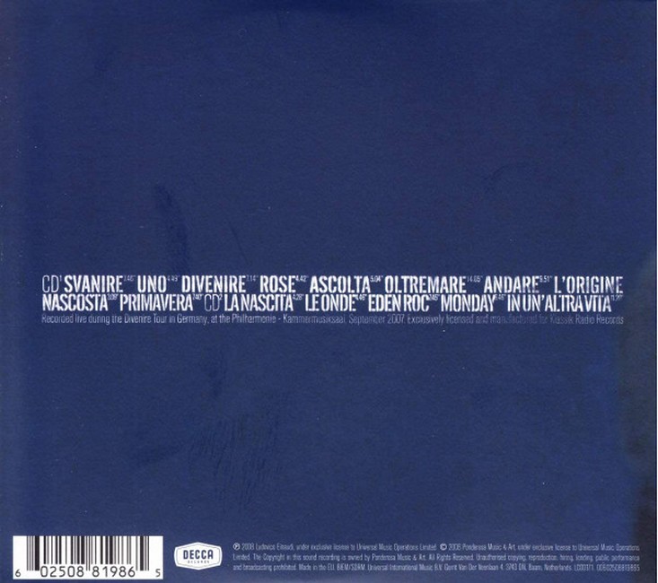 Фірмовий CD-дискLudovico Maria Enrico Einaudi OMRI is an Italian pianist and composer. Trained at the Conservatorio Verdi in Milan, Einaudi began his career as a classical composer, later incorporating other styles and genres such as pop, rock, folk, and world music.