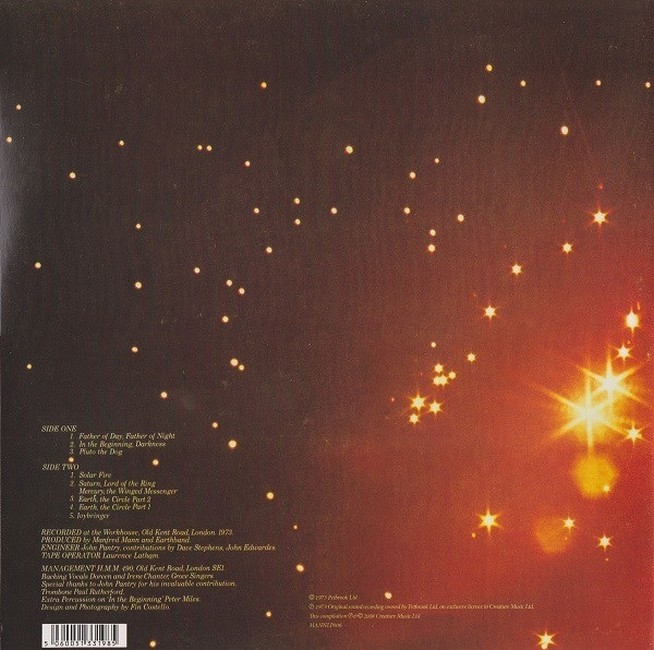Фірмова вінілова платівка (VINYL)Solar Fire is the fourth studio album by Manfred Mann's Earth Band, released in 1973. It spent 15 weeks on the Billboard 200 charts, peaking at number 96 on 11 May 1974. It was initially intended to be a full adaptation of The Planets Suite but Gustav Holst's heir, who had previously given permission to the adaptation of "Jupiter, the Bringer of Jollity" in the hit single "Joybringer", didn't allow this to happen, so the band made their own "cosmic" album using mostly original themes, although the most well known song is the (greatly reworked) Bob Dylan composition "Father of Day, Father of Night", which is in the Earth Band's live set to this day and remains a popular song on rock radio. "Pluto the Dog" (a play on the Disney character) and the two-part "Saturn, Lord of the Ring/Mercury, the Winged Messenger" are instrumentals, and "Earth the Circle Part 2" features only two lines of sung vocals. The album is often considered the peak of the early Earth Band line-up and, for a lot of progressive rock reviewers, the pinnacle of Mann's career in general.