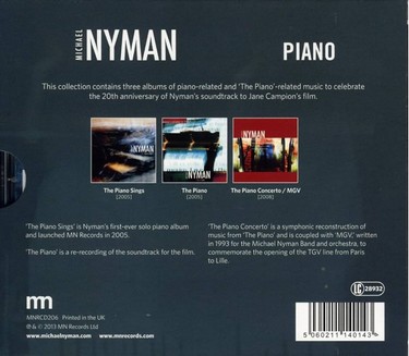 Фірмовий CD диск (CD)Michael Laurence Nyman, CBE (born 23 March 1944) is an English composer, pianist, librettist, musicologist, and filmmaker. He is known for numerous film scores (many written during his lengthy collaboration with the filmmaker Peter Greenaway), and his multi-platinum soundtrack album to Jane Campion's The Piano. He has written a number of operas, including The Man Who Mistook His Wife for a Hat; Letters, Riddles and Writs; Noises, Sounds & Sweet Airs; Facing Goya; Man and Boy: Dada; Love Counts; and Sparkie: Cage and Beyond. He has written six concerti, five string quartets, and many other chamber works, many for his Michael Nyman Band. He is also a performing pianist. Nyman prefers to write opera over other forms of music.