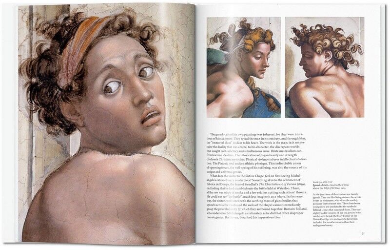 This book provides the essential introduction to Michelangelo with all the awe-inspiring masterpieces and none of the queues and crowds. With vivid illustration and accessible texts, we explore the artist’s extraordinary figuration and celebrated style of terribilita (momentous grandeur), which allowed human and biblical drama to exist in compelling scale and fervor. Through the power hubs of Renaissance Italy, we take in his major commissions and phenomenal capacity for compositional schemes, whether the famous Medici library in Florence, or the extraordinary 500-square-meter ceiling (1508–1512) in the Vatican’s Sistine Chapel.