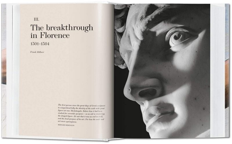 This fresh TASCHEN edition traces Michelangelo’s ascent to the cultural elite of the Renaissance. Ten richly illustrated chapters cover the artist’s paintings, sculptures, buildings, and drawings, including a close analysis of the artist’s tour de force frescoes in the Sistine Chapel. Full-page reproductions and enlarged details allow readers to appreciate the finest details in the artist’s repertoire, while the book’s biographical essay considers Michelangelo’s more personal traits and circumstances, such as his solitary nature, his thirst for money and commissions, his immense wealth, and his skill as a property investor.