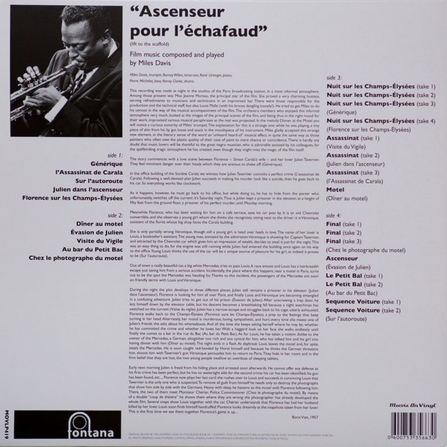 Associated by some critics with film noir, and introducing new narrative, cinematographic, and editing techniques, the film is considered an important work in establishing the French New Wave and the New Modern Cinema. The improvised soundtrack byMiles Davis and the relationship the film establishes among music, image, and emotion were considered ground-breaking.