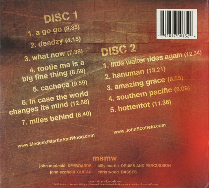 Фірмовий CD диск (CD)Medeski Martin & Wood (or MMW) is an American jazz fusion band formed in 1991, consisting of John Medeski on keyboards, Billy Martin on drums, and Chris Wood on bass. The band is influenced by musical traditions including funk and hip hop and is known for an unconventional style sometimes described as "avant-groove".