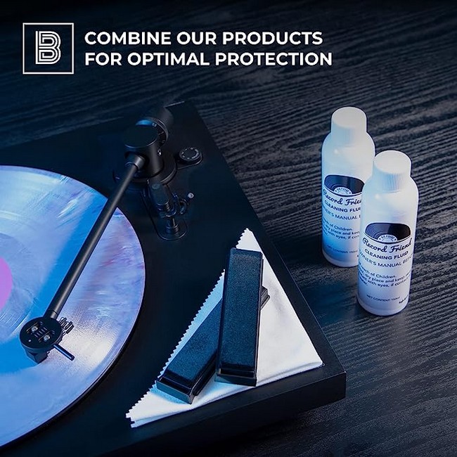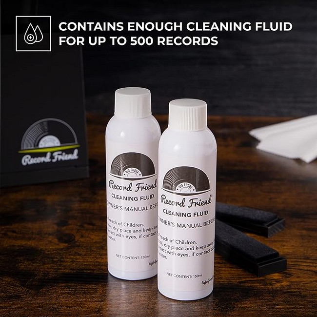 Набір для чищення вінілових платівок Big Fudge від Record Friend Включає машинку для чищення та засіб для очищення вінілових платівок, в комплекті також є серветка з мікрофібри та підставка для аксесуарів до програвача..
