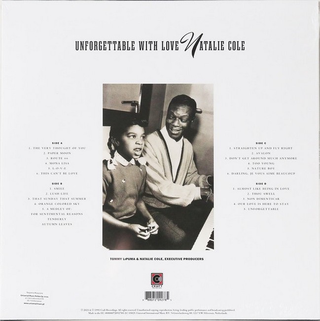 Фірмова вінілова платівка (VINYL)Unforgettable … with Love, also known as simply Unforgettable, is the twelfth studio album by American singer Natalie Cole. Released on June 11, 1991, the album includes covers of standards previously performed by her father, Nat King Cole. It was also her debut for Elektra Records, after being given her release from EMI Records.