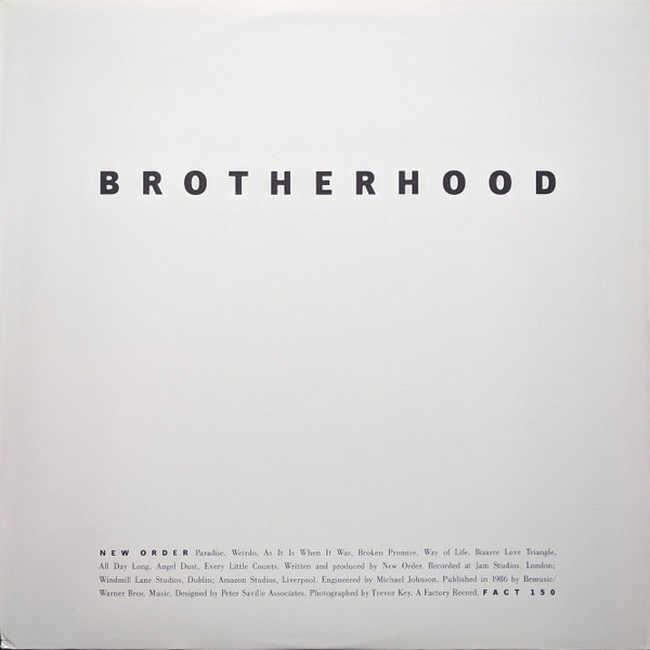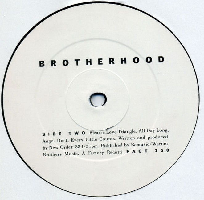 Brotherhood is the fourth studio album by English rock band New Order, released on 29 September 1986 by Factory Records. It contains a mixture of post-punk and electronic styles, roughly divided between the two sides. The album includes "Bizarre Love Triangle", the band's breakthrough single in the United States and Australia; it was the only track from the album released as a single and as a video (although "State of the Nation" was added to most CD editions).
