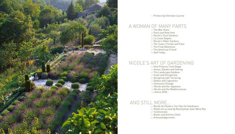 Nicole de Vesian: Gardens is an up-to-date edition of de Vesian’s bestselling 2011 monograph, with a new postface describing de Vesian's influence on the art of gardening. In general, the publication acts as a tribute to de Vesian and her life. Her close friend, acclaimed garden historian Louisa Jones (The Garden Visitor’s Companion), shares her own thoughts on the work of this atypical creator, accompanied by accounts from her friends and pupils: Christian Lacroix, the nursery owner Jean-Marie Rey, the landscape artists Arnaud Maurieres, Eric Ossart and Marc Nucera, as well as the garden historians Roy Strong and John Brookes. As Louisa Jones writes, de Vesian "has a feeling for space like musicians have a feeling for music."