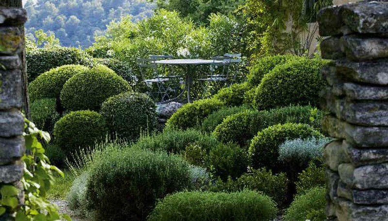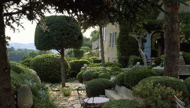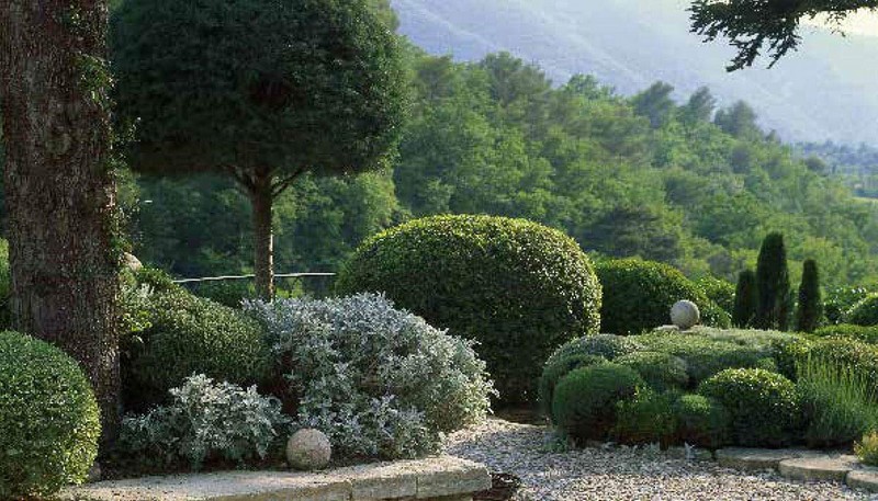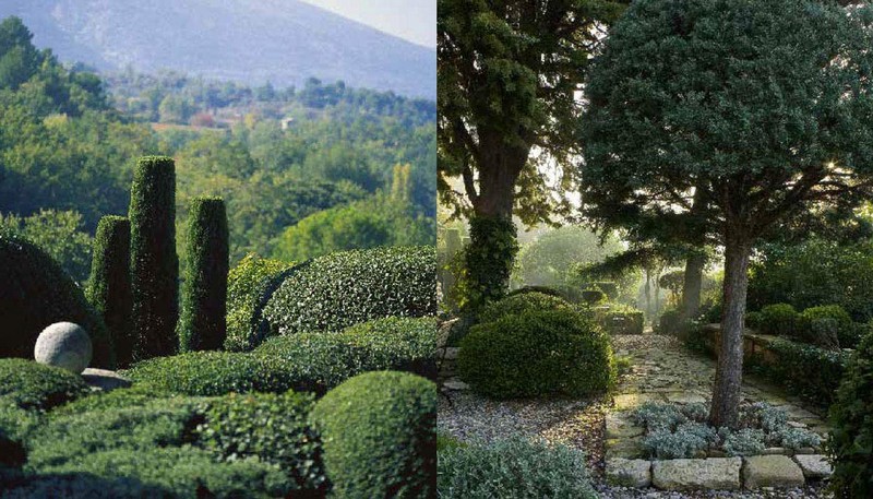 After a career as a designer working for such great design houses as Hermes, Nicole de Vesian (1916–96) moved to Provence and created her first garden. On the narrow terraces around her home, de Vesian designed her own masterpiece in a minimal but far from austere style, composed mainly of heathland plants (varieties of thyme, lavender, rosemary, rockrose and box tree), in which she pruned all her plants to cushion shapes of varying yet superbly proportioned sizes, resulting in a breathtaking scene. Her gardens soon inspired gardeners and landscapers around the world. Today, few gardens have been imitated as readily as those of de Vesian. Her most notable garden is La Louve, which is her garden in Bonnieux, a French hilltop village in the Luberon area of Provence.
